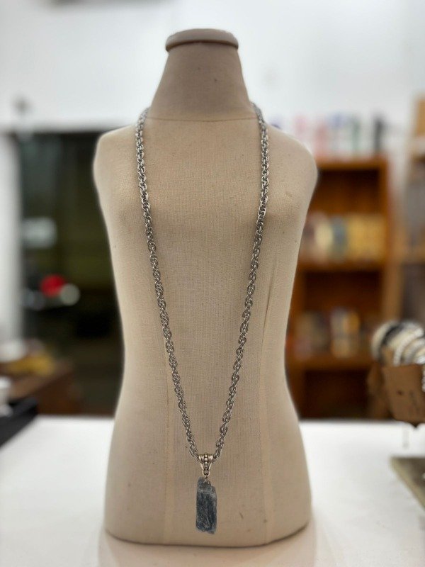 Collar con cadena de acero quirúrgico con dije de piedra en bruto