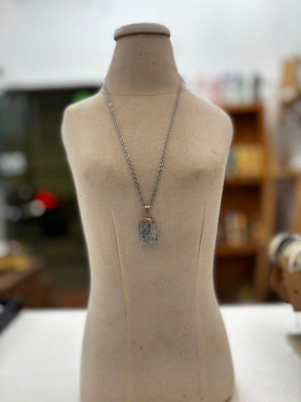 Collar con cadena de acero quirúrgico con dije de piedra en baño