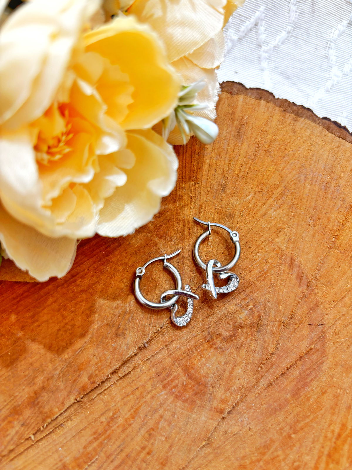 argolla en acero quirúrgico con dije bañado y con strass en forma de corazon calado