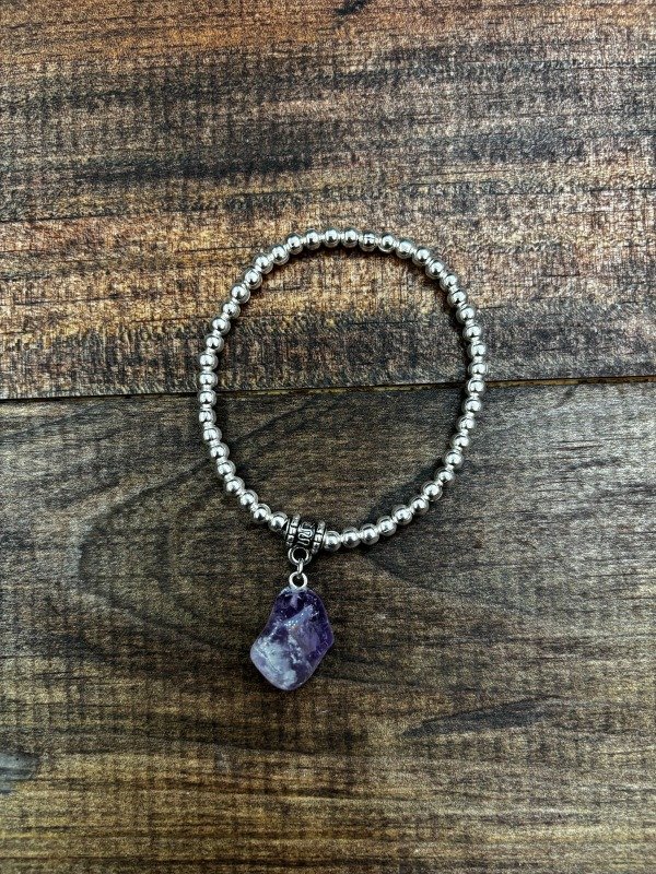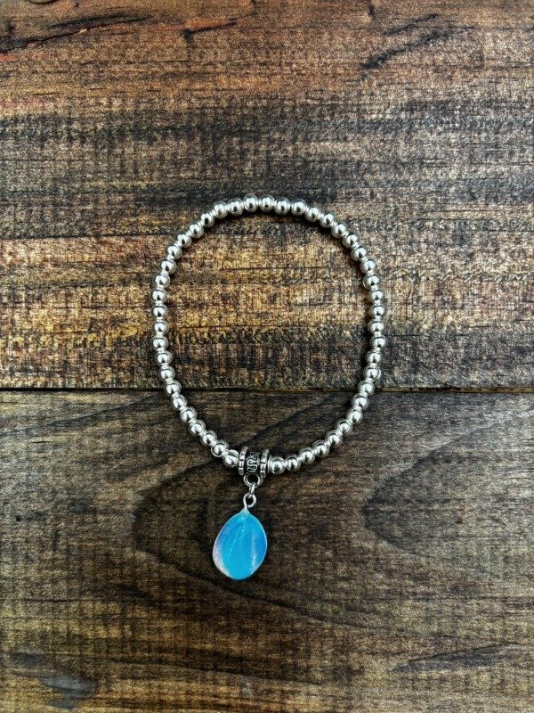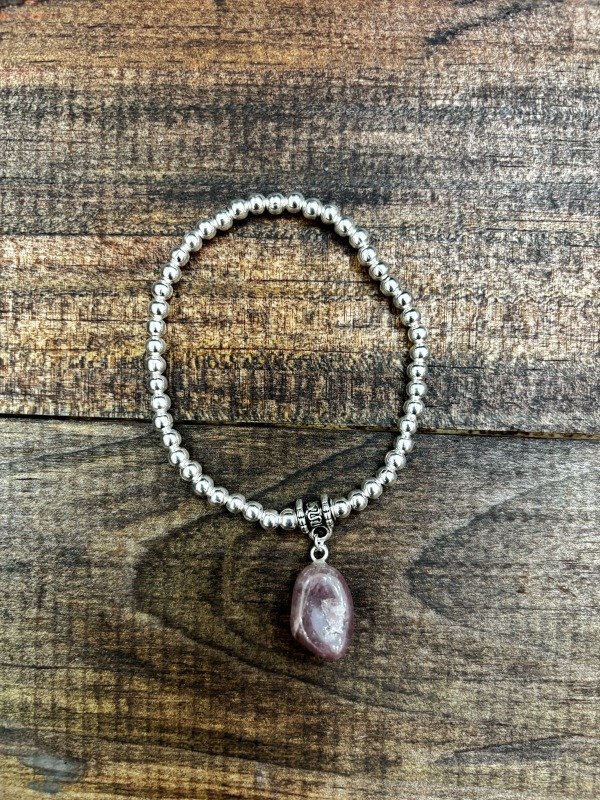 pulsera con metal niquelado claro con dije de piedra