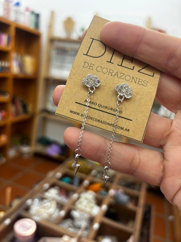 aros en acero quirurgico con cadenita y dije nube strass