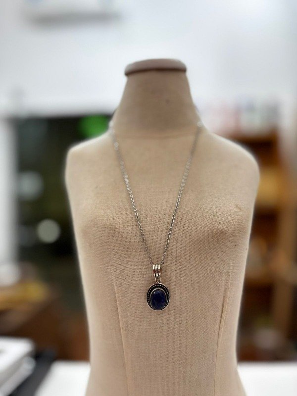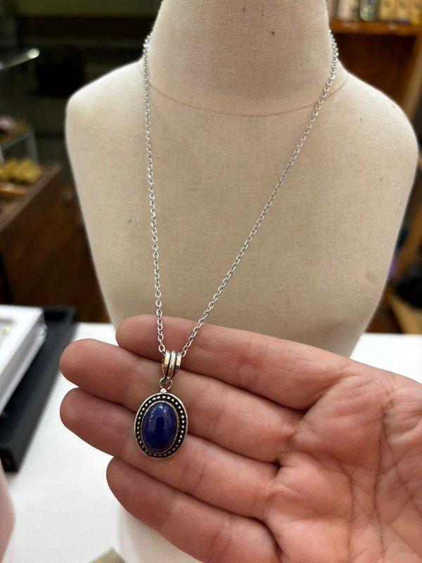 collar cadena de acero quirurgico con piedra lapizlazuli con dije base alpaca bañada