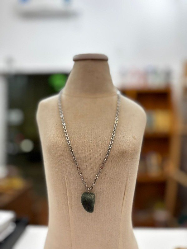 collar en cadena de acero quirurgico con piedra de cuarzo verde rolada