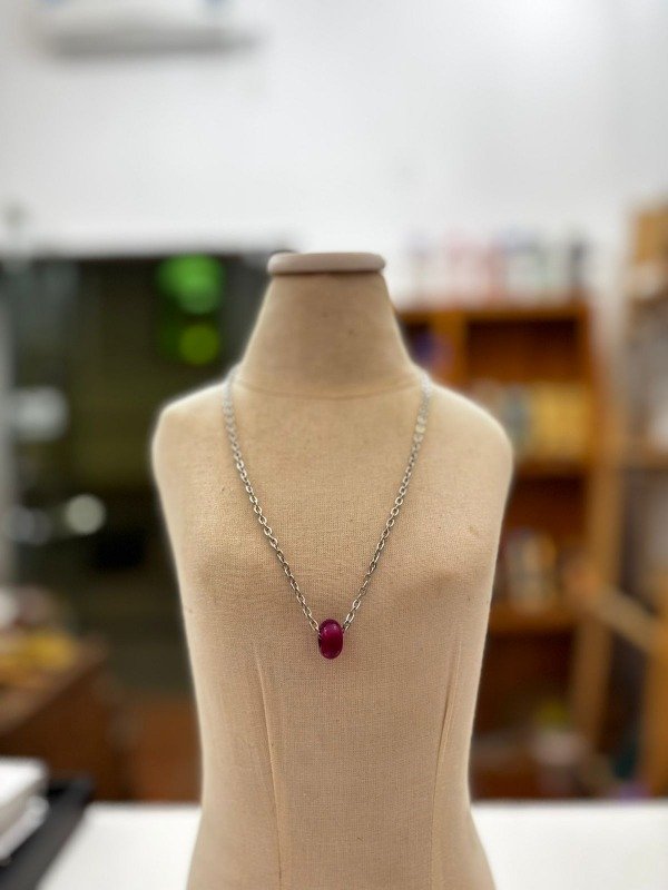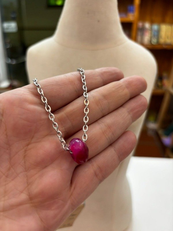 Collar con cadena de acero y dije de agata fucsia pasante